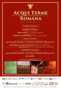 Dal 31 maggio al 2 giugno 2024 Acqui Terme ricorda le sue origini romane con attività didattiche, visite guidate, spettacoli, rievocazioni in costume, enogastronomia, divertimento per vivere ad Aquae Statiellae e la grande storia dell’Impero Romano.